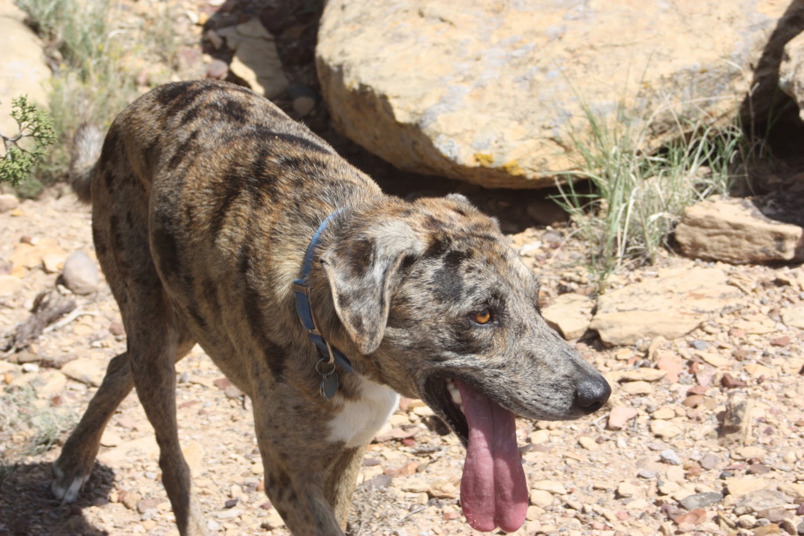 This is Max, Tom's dog. He is part Lab and maybe Australian Shepherd? His coloring is so unusual. When he was a puppy, I kept threatening to steal him because he was so darned cute. Tom had done a wonderful job training him to obey. Maybe I should send my dogs over so he can train them.